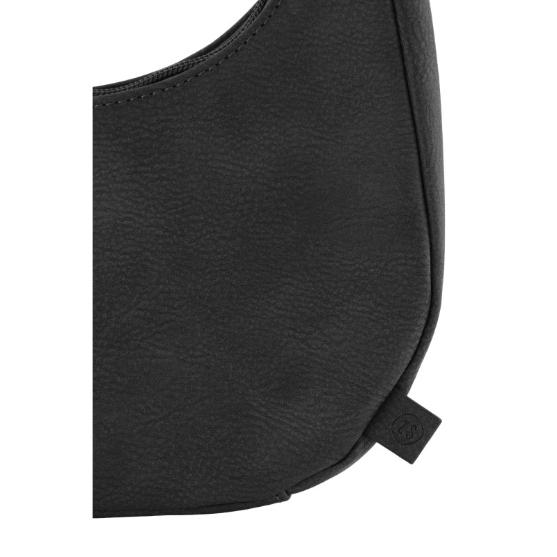 Een zwart schoudertasje van Zusss in de vorm van een halve maan. Het tasje lijkt op leer, echter het is 100% PU. Afmeting is 18x25x7,5cm. Het platte hengsel is makkelijk te verstellen.