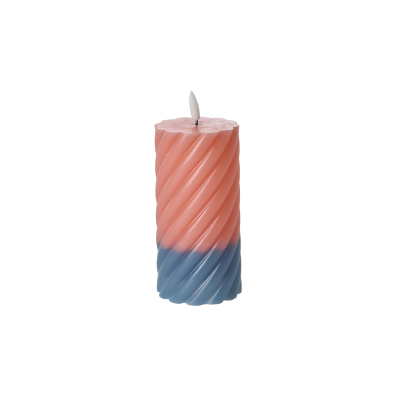 Een leuke LED kaars van Rice in de kleuren koraal en blauw. Deze LED kaars heeft twee AA batterijen nodig, zitten er niet bij. Diameter is 7,5cm en de hoogte is 15cm. Gemaakt van 75% paraffine wax en 25% ABS. Lijkt net een echte kaars. Er zit een timer op van 6 uur.