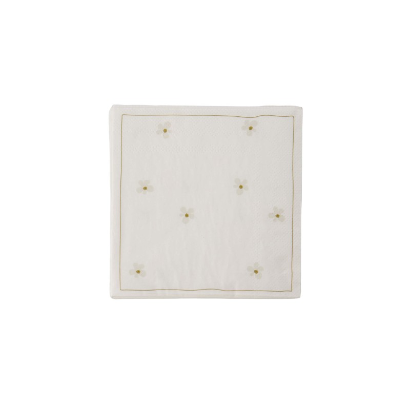 Vierkante servetten van Zusss met een bloemenprint. Het zijn witte servetten en de bloemen lichtgrijs/goud. Een leuke neutrale servetten voor iedere gelegenheid. Servetten zijn gemaakt van FSC mixpapier en er zitten er 20 in een verpakking. Afmeting van de servetten is 12,5x12,5cm.